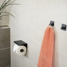 Der Klopapierhalter mit Ablage in Kombination mit den sellbstklebenden Handtuchhaken bilden zusammen nicht nur eine ästhetische Optik im Bad sondern ergänzen sich perfekt für eine optimale Toilettenpapier- und Handtuch Aufbewahrung.
