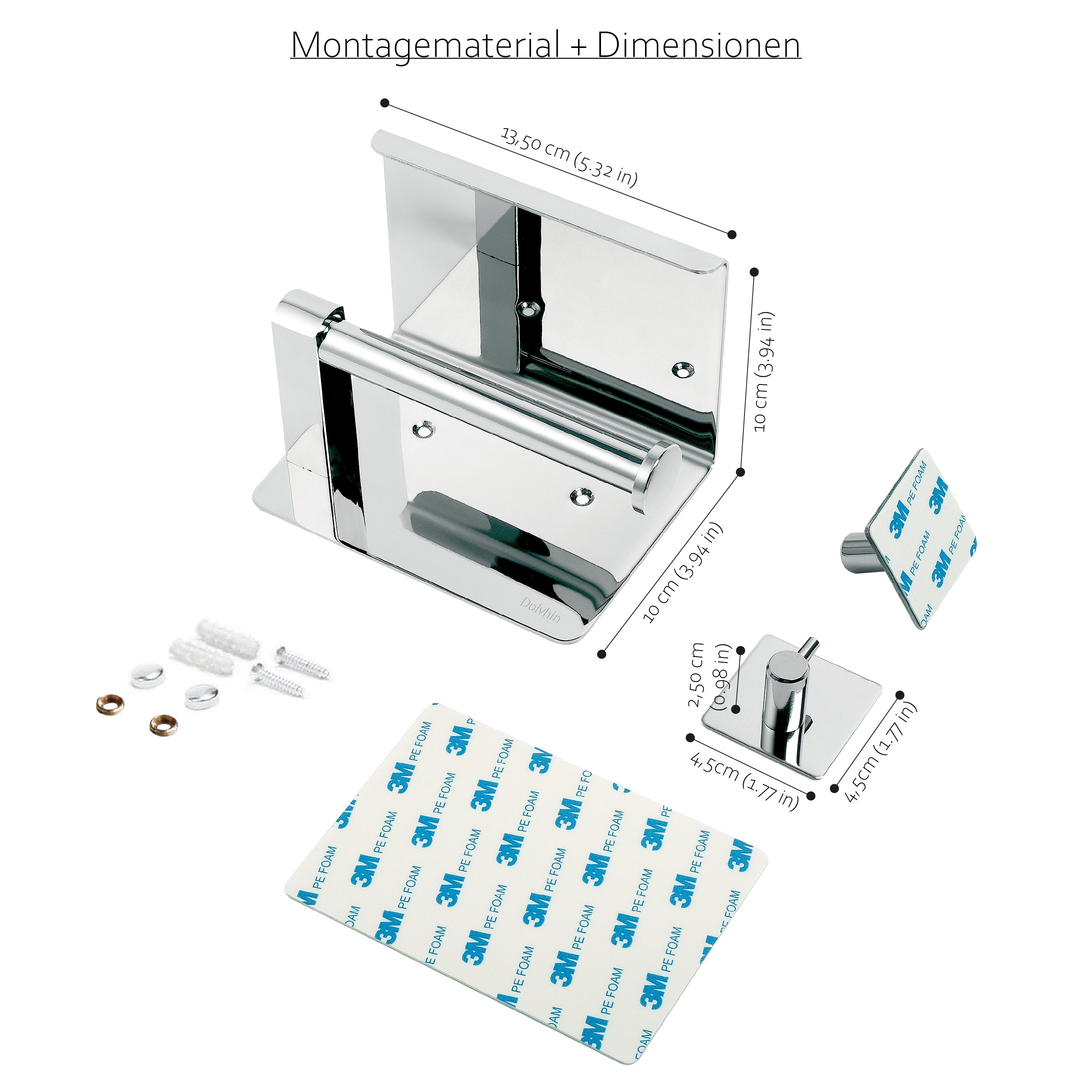 Die Anbringung ohne Bohren ist innerhalb von Sekunden erledigt, da das extreme starke 3M Klebepad nur noch angebracht werden muss. Abziehen, ankleben, fertig! Wer die Toilettenpapierhalterung Bohren möchte, liegt das passende Bohrmaterial selbstverständlich auch dabei.