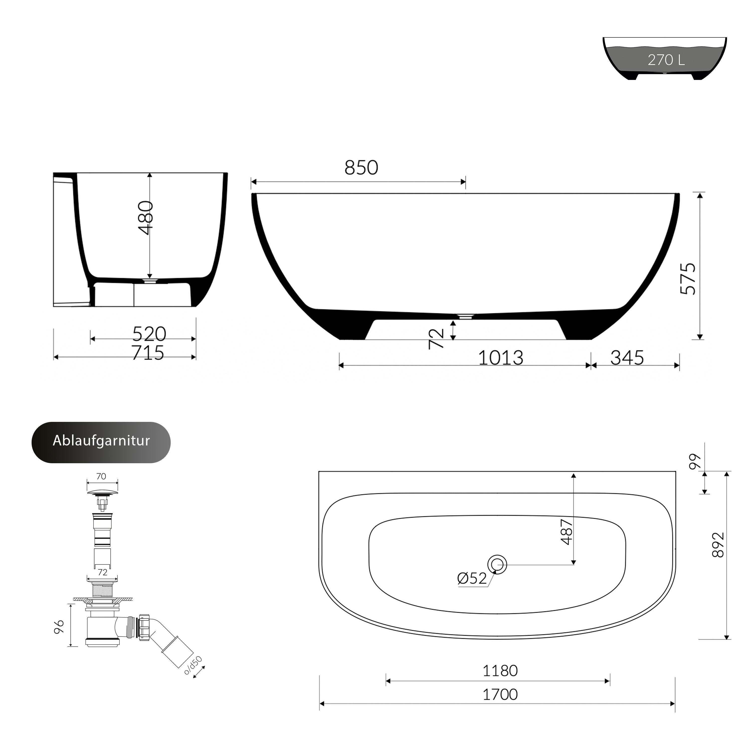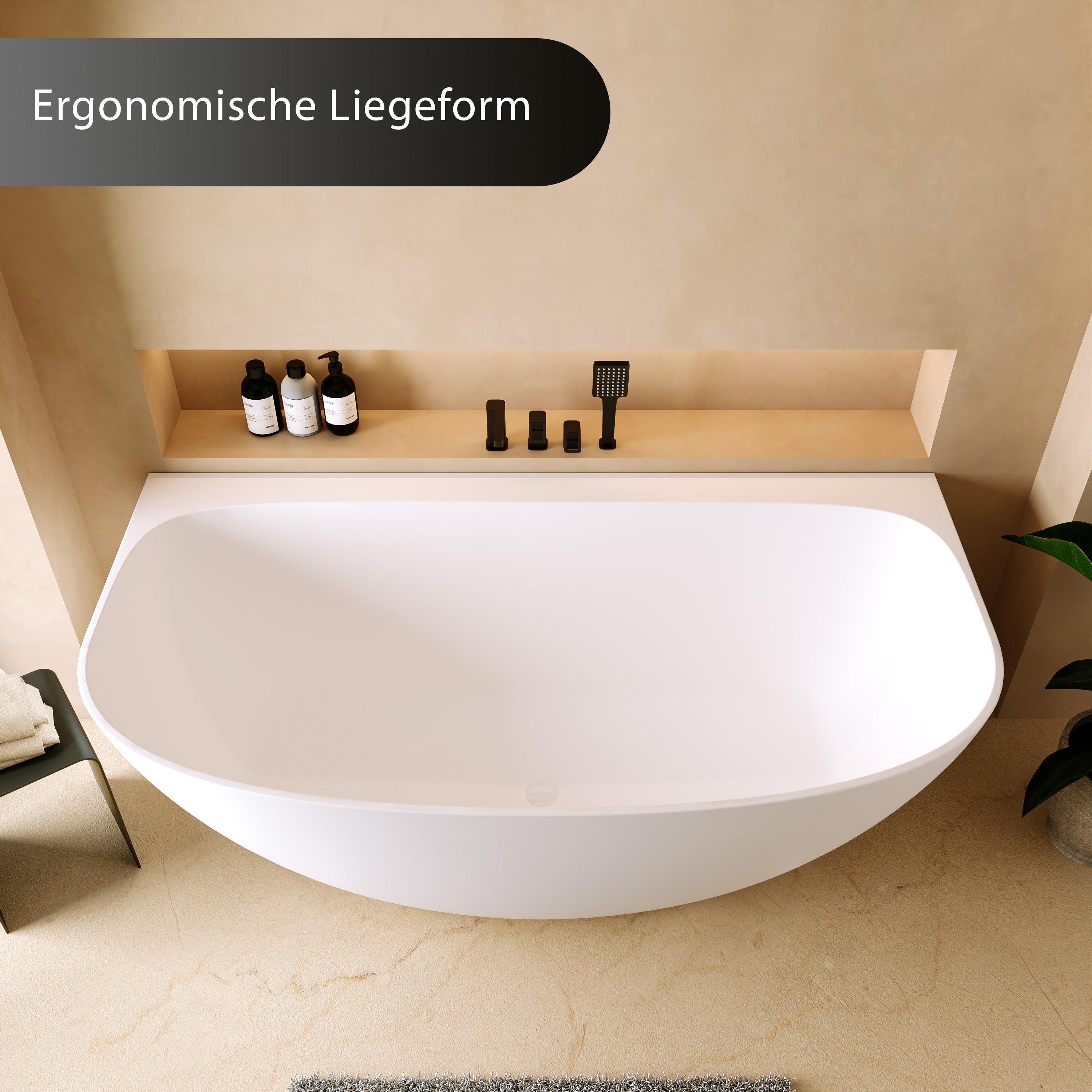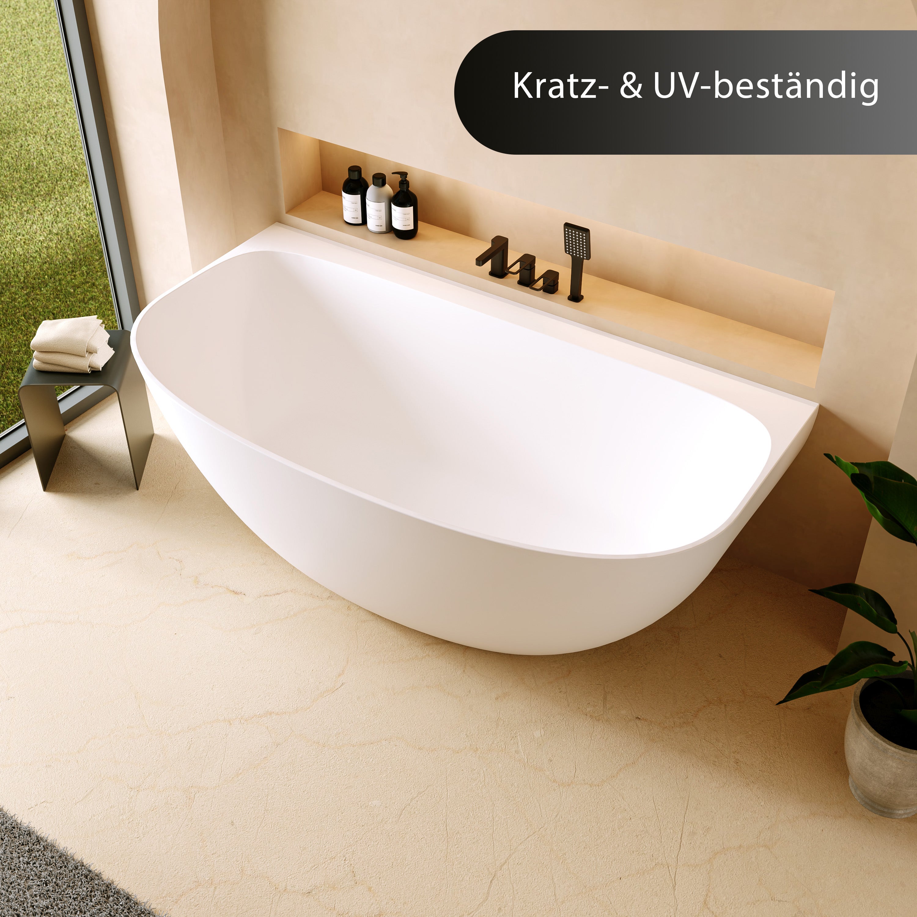 Dolvhin® Halb freistehende Badewanne "Tahaa" aus Mineralguss | Oval | 170x89x57 cm