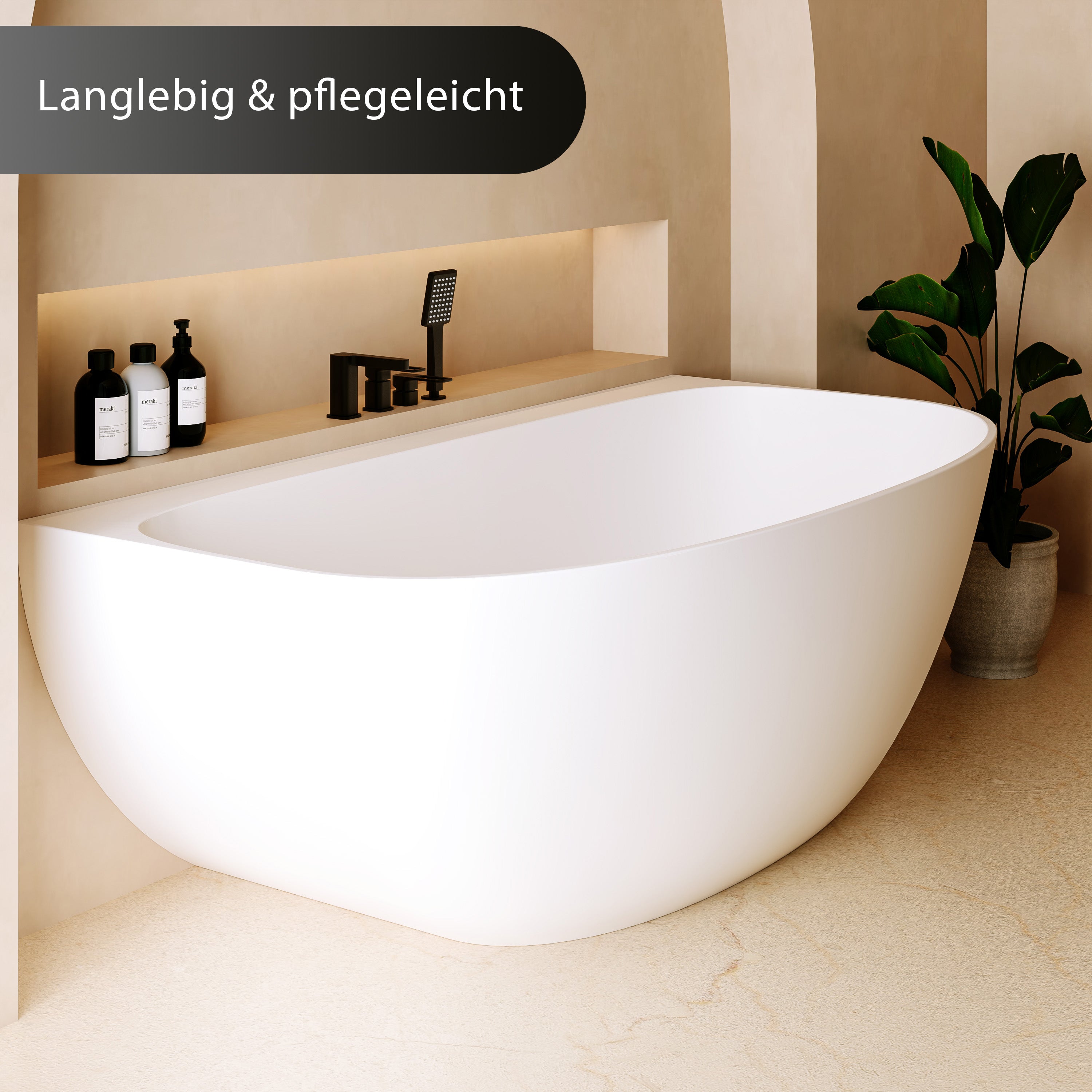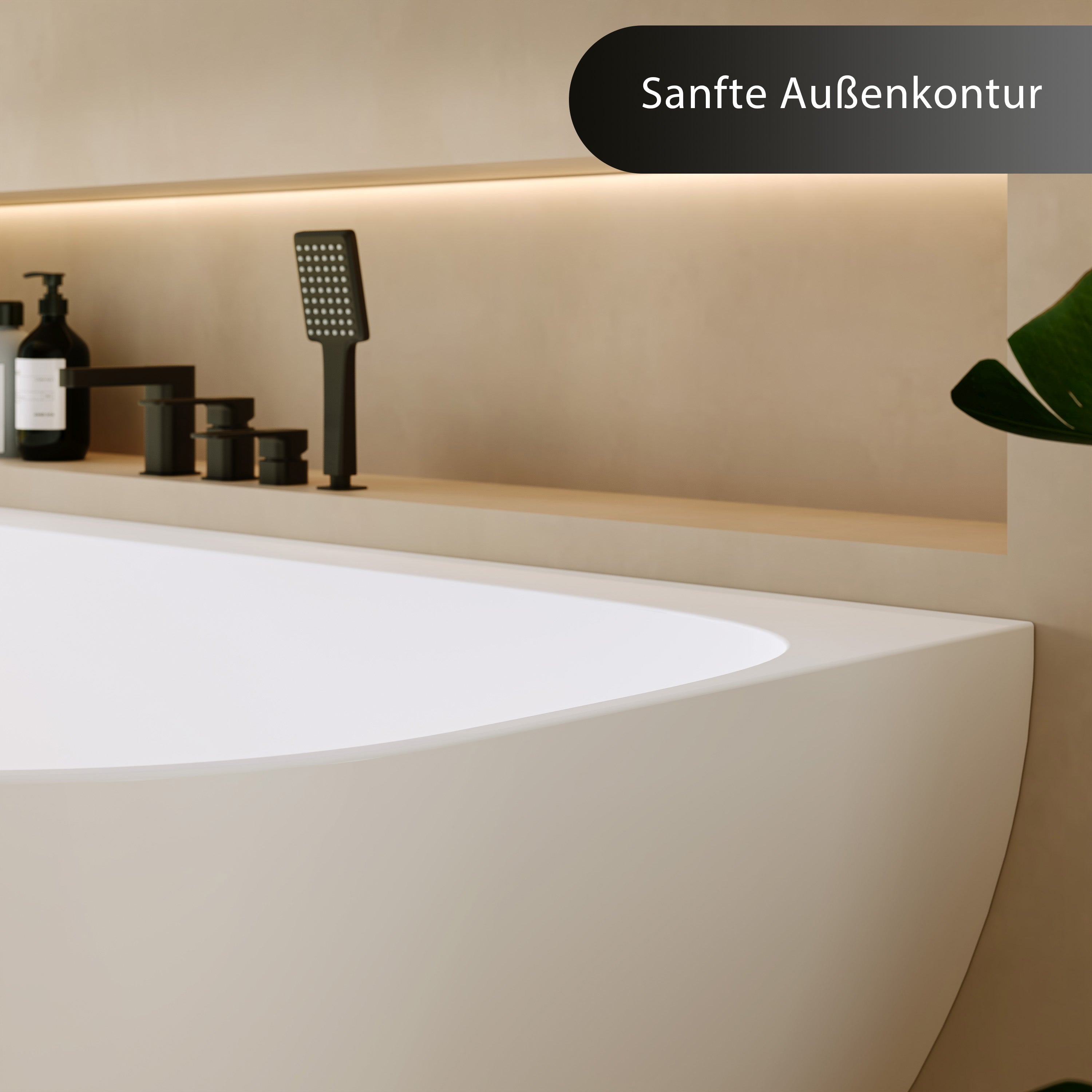 Dank des massiven Mineralguss-Materials ist die Badewanne besonders robust, dauerhaft formstabil und für eine lange Nutzungsdauer ausgelegt – auch bei täglichem Gebrauch.